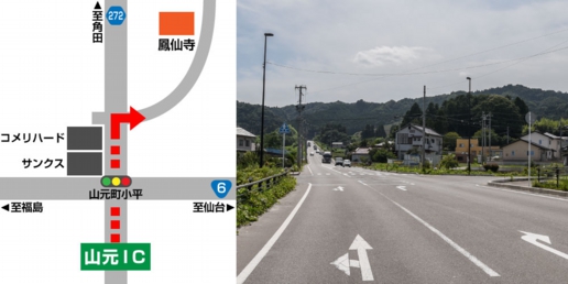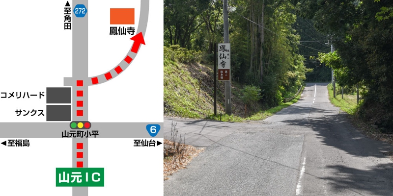 常磐線浜吉田駅よりタクシーで10〜15分。鳳仙寺と運転手にお伝えください。